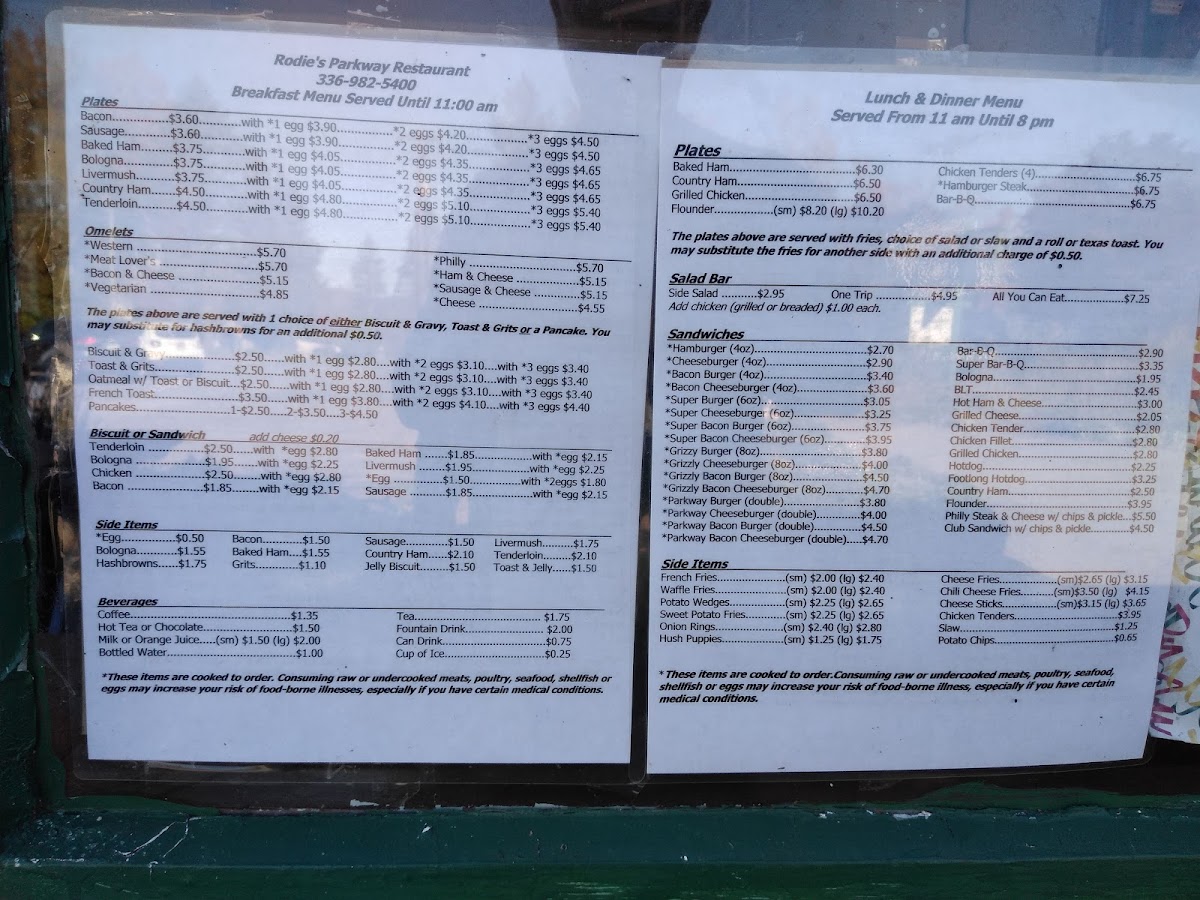 Rodie's Parkway Restaurant Menu